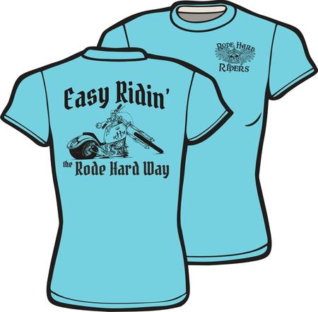 RH 630 - Ladies 100% aquatic blue with one color RHR logo over the heart and RHR "Easy Ridin'" Logo on the back $11.00